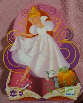 Precioso puzzle de la marca Djeco con temática de cuento. - Ilustración de Cenicienta. - 36 piezas más 4 piezas especiales. - Diseñado para fomentar la imaginación.