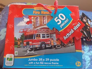 Puzzle de piezas gigantes de bomberos. El puzzle está perfecto, la caja por la parte que cierra está un poco estropeada.