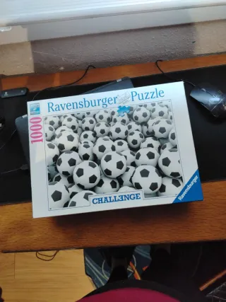 Puzzle de la marca Ravensburger con 1000 piezas. Presenta un diseño de múltiples balones de fútbol. - 1000 piezas. - Diseño de balones de fútbol.