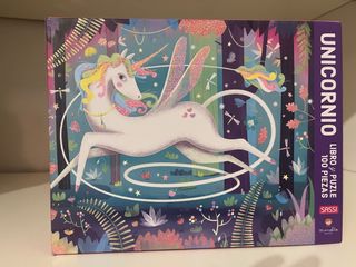Puzzle de unicornio de la marca Sassi, ideal para los pequeños de la casa. - 100 piezas. - Ilustración mágica de un unicornio con alas. - Diseño colorido y brillante.