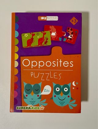 Set de 12 puzzles de Opposites de Eureka Kids, ideal para niños a partir de 3 años. Fomenta el aprendizaje de conceptos opuestos de forma divertida. - 12 puzzles de doble cara. - Diseños coloridos con animales. - Fomenta la coordinación mano-ojo. - En perfecto estado.