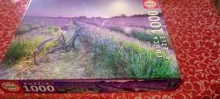 Puzzle de la marca Educa con 1000 piezas que representa un hermoso paisaje de campos de lavanda con una bicicleta. - 1000 piezas. - Imagen de un campo de lavanda al atardecer. - Incluye bicicleta en el paisaje.