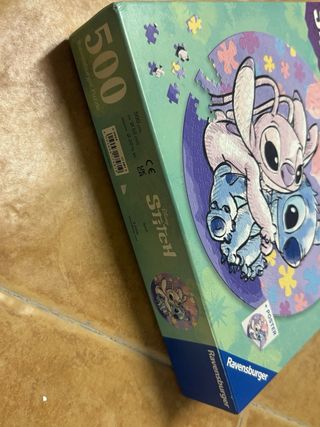 Puzzle circular de Stitch y Ángel de Disney con 500 piezas. - Incluye póster. - Marca: Ravensburger.