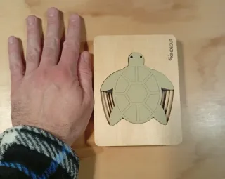 Puzzle de madera con forma de tortuga para colocarlas en orden de más pequeña a más grande.