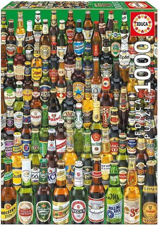 Puzzle cervezas. Ilustración detallada de botellas de cerveza. Ideal para aficionados a los puzzles y amantes de la cerveza. - Marca: Educa - Borras - Número de Piezas: 1000. - Tamaño del Puzzle: 68 x 48. - Articulo NUEVO