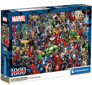 Puzzle de los Héroes Marvel. - Marca: Educa - Número de Piezas: 1000. - Ilustración de múltiples personajes de Marvel. - Tamaño Puzzle: 68 x 48 cm. - Artículo NUEVO