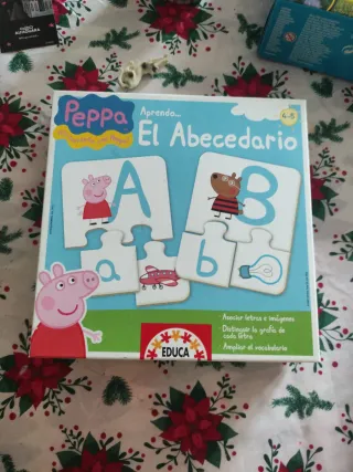 Puzzle educativo de Peppa Pig para aprender el abecedario. Ideal para niños de 4 a 5 años. - Incluye letras y dibujos. - Fomenta el aprendizaje de letras e imágenes. - Ayuda a distinguir la grafía de cada letra. - Amplía el vocabulario.