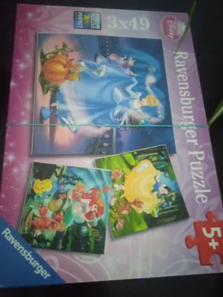 Puzzle de Ravensburger con escenas de princesas Disney y animales. Ideal para los pequeños de la casa. Más dos puzzles de 99 piezas - 3 puzzles de 49 piezas cada uno. - Personajes de Disney. - Edad recomendada: 5+ años.