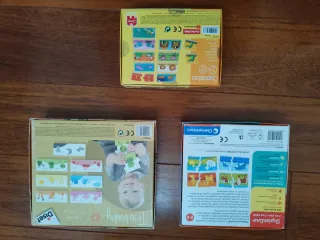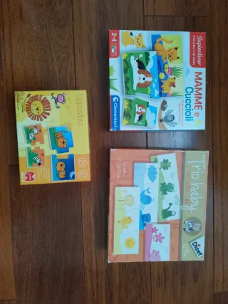 Lote de tres puzzles infantiles, ideales para los más pequeños a partir de 2 años. Incluye Mamme e Cuccioli de Clementoni, Opposites de Goula y Trio baby de Diset. - Puzzle Mamme e Cuccioli de Clementoni. - Puzzle Opposites de Goula. - Puzzle Trio baby de Diset.