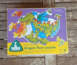 Divertido puzzle de suelo con temática de dragón. - 24 piezas. - Edad recomendada: 3-6 años. - Tamaño aproximado: 680mm x 570mm.