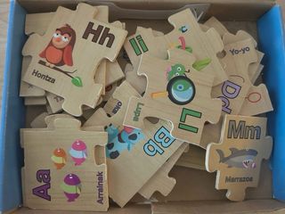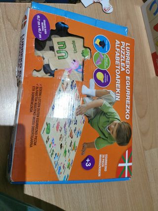 Puzzle de madera de suelo. Lurreko egurrezko puzzlea alfabetoarekin. El puzzle está perfexto. La caja algo abollada.