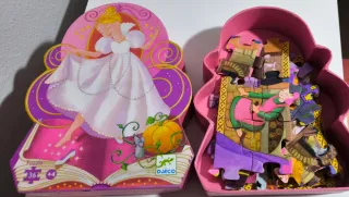 Puzzle de la marca Djeco con temática de La Cenicienta. Ideal para los más pequeños. - 36 piezas. - Incluye una pieza adicional de +4 años. - Diseño colorido y detallado.