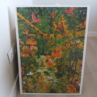 Puzzle completo con una vibrante escena de selva llena de animales y personajes fantásticos. - Ilustración detallada de una jungla exuberante. - Figuras de monos, pájaros y criaturas míticas. - Colores vivos y diseño llamativo. Precio a convenir Medidas : 71 x 51 cms