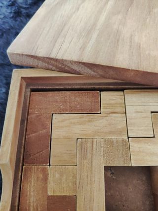 Juego de rompecabezas de madera. - Piezas de madera natural. - Incluye caja y tapa.