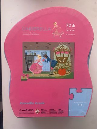 Hay 2 Puzzle de la marca Crocodile Creek con temática de Cenicienta. - 72 piezas. - Ilustración de Cenicienta y el Príncipe. - Recomendado para mayores de 6 años. 5 euros la unidad