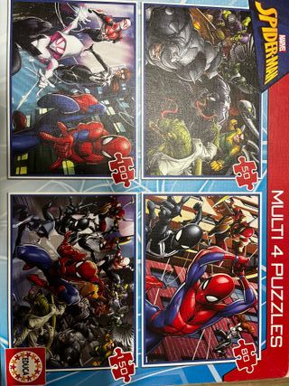 Pack de 4 puzzles de Spider-Man de la marca Educa. - Incluye 4 puzzles diferentes con escenas de Spider-Man. - Diseños variados con personajes del universo Marvel. - Ideal para fans de Spider-Man y coleccionistas.