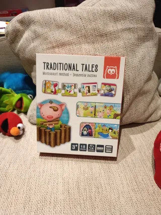 - Basado en el “método Montessori” - Puzzle secuencial sobre cuentos tradicionales - Diseñado para ayudar a los peques a descubrir las nociones cronológicas (antes, ahora y después) y a reconstruir secuencias lógicas de diferentes niveles de dificultad. - Potencia el desarrollo de la coordinación ojo-mano y de la adquisición de vocabulario.