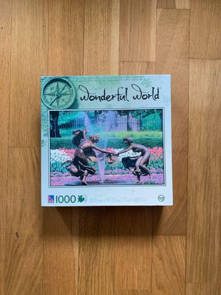 🎁 -5% de descuento para seguidores. Puzzle de 1000 piezas con la imagen de una escultura Wonderful World. - Marca: Sure Lox. - Dimensiones: 73 cm x 48.57 cm 🎨 Color: Gris 🔍 Estado: 7/10 Buen estado en general pero con algún defecto en la caja. ✅ Para hacer lotes infórmame sobre los artículos que deseas ¡Y yo me encargo!