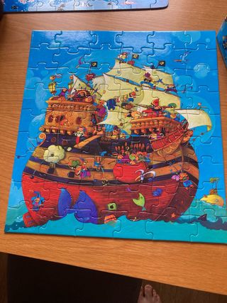 Divertido puzzle de la marca Goula con temática pirata. Ideal para los más pequeños. - 35 piezas. - Ilustración colorida de piratas y animales marinos.