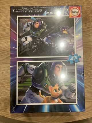 Pack de dos puzzles de la película Lightyear de Disney Pixar. - Incluye dos imágenes diferentes de Buzz Lightyear y sus compañeros. - Marca Educa. - Cada puzzle tiene 48 piezas.