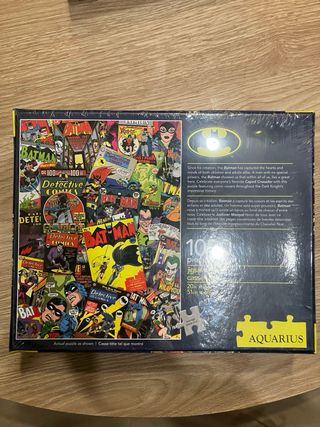 Puzzle de 1000 piezas con temática de Batman y cómics clásicos. - Diseño vibrante con ilustraciones de Batman y villanos. - Marca: Aquarius. - Incluye 1000 piezas. - Tamaño del puzzle montado: 51cm x 69cm.