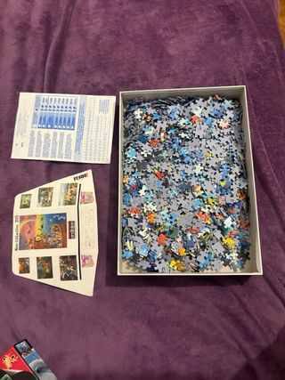 vendo 6 puzzles. todos montados una vez y recogidos. 1-> 1500 piezas. Image de Hallstatt, pueblo austriaco entre lagos y montañas. 42 x 29 cm, sus piezas son muy pequeñas, (más de lo normal) 2-> Educa de 3000 piezas. dibujo es de la localidad francesa de Colmar. 120x85cm 3-> 1000 piezas . La imagen es un dibujo de las calles inclinadas de San Francisco con sus tranvías. 68 x 48 cm 4-> 1000 piezas en formato panorama, apaisado. La imagen es 6 -> panoramico atardecer de Venecia: 98 x 75 cm montado sobre una superficie listo para ser colgado sin marco. se puede vender desmontado pero sin caja. marca Ravensburger