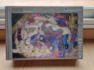Puzzle de 1000 piezas con la obra Die Jungfrau de Klimt SIN ABRIR - Edición de 2006 de Editions Ricordi. - Diseño de encaje no 2 pcs.alike!. - Grosor del puzzle: 2.2 mm. Ideal para regalar esta Navidad!