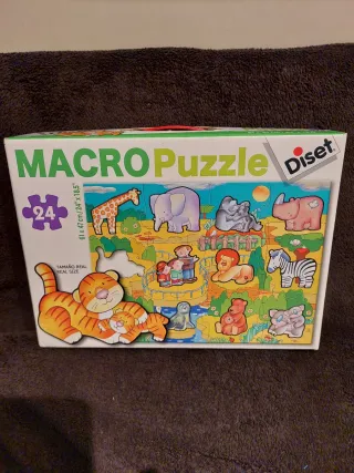 Puzzle infantil de la marca Diset, modelo Macro Puzzle. Contiene 24 piezas grandes con ilustraciones de animales. - Ilustraciones de animales de zoo. - 24 piezas grandes. - Medidas: 61 x 47 cm.