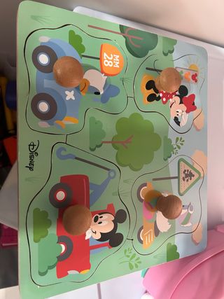 Puzzle de madera con personajes de Disney. Ideal para los más pequeños. - Diseño con vehículos y personajes. - Piezas con tiradores de madera.