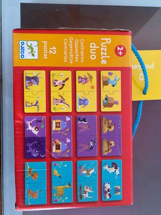 Juego de mesa educativo Puzzle Duo de la marca Djeco. Ideal para los más pequeños. - Contiene 12 puzzles. - Edad recomendada: a partir de 2 años. - Diseño con animales.