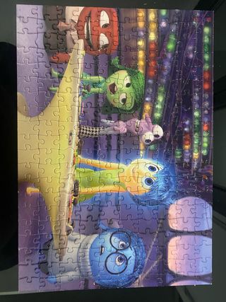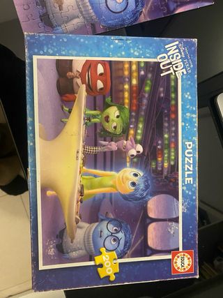 Puzzle de la película de Disney Inside Out con 200 piezas. - Personajes: Alegría, Tristeza, Miedo, Ira, Asco. - Diseño colorido y detallado. - La caja esta dañada