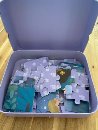 Puzzle de la marca Janod 36 piezas, con un diseño encantador de hadas en un bosque nocturno. Incluye maletín de transporte. A partir de 4 años. Como nuevo.