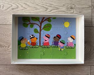 Set de dos puzzles infantiles de Peppa Pig. - Incluye dos puzzles de 20 piezas cada uno. - Diseños coloridos con personajes de Peppa Pig. - Medidas aproximadas de cada puzzle: 28 x 20 cm.