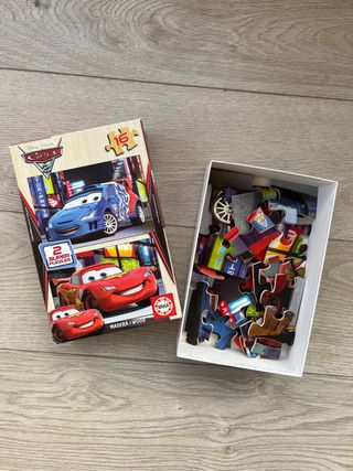 Set de dos puzzles de Cars de madera, ideal para los más pequeños. Cada puzzle tiene 16 piezas. - Personajes de Cars. - Fabricados en madera. - Incluye 2 puzzles de 16 piezas cada uno. Impecables.