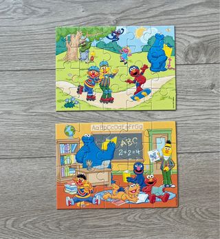 Pack de dos puzzles del Barrio Sésamo, cada uno con 20 piezas. Incluye láminas para pintar. - Personajes de Barrio Sésamo. - Ideal para niños a partir de 3 años.