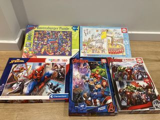 Lote de puzzles , cajas en muy buen estado y con todas las piezas - Puzzle Ravensburger 100 piezas. - Puzzle Clementoni Spiderman 180 piezas. - Puzzle Avengers 200 piezas. - Puzzle Avengers 3 puzzles. - Puzzle infantil. - Precio por unidad: 5€.