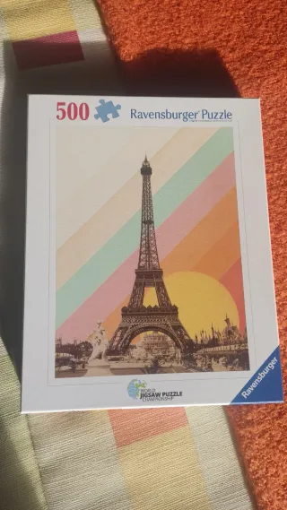 Puzzle de la Torre Eiffel en París de la marca Ravensburger. Mundial 2025 . Sin abrir - 500 piezas. - Diseño con colores pastel y atardecer.
