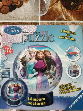 Puzzle 3D de Ravensburger con licencia oficial de Disney Frozen. Ideal para fans de la película. - 72 piezas. - Tecnología Easyclick para un encaje perfecto. - Incluye base para lámpara nocturna. - Diámetro aproximado de 13 cm.
