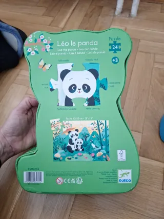 Un divertido puzzle de la marca Djeco con un diseño de panda. - Ilustración de un panda con bambú y flores. - 24 piezas. - Recomendado para mayores de 3 años.