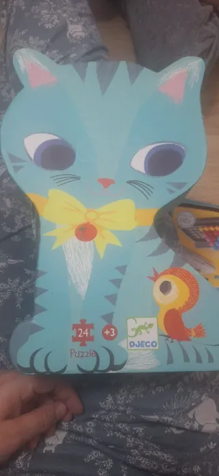 Divertido puzzle con forma de gato y un pajarito, ideal para los más pequeños. - 24 piezas. - A partir de 3 años. - Marca Djeco.