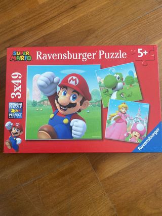 Puzzle de Ravensburger con temática de Super Mario. Ideal para los fans del juego. - Personajes: Mario, Yoshi, Princesa Peach y Toad. - Tamaño: 3x49 piezas. - Edad recomendada: 5+ años. - Diseño: Perfect Age Fit.
