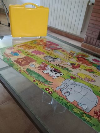 Divertido puzzle de piezas grandes, para niños pequeños, con un práctico maletín amarillo para llevarlo