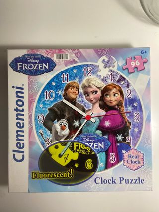 Puzzle de Frozen en forma de reloj. ¡Es fluorescente! Incluye 96 piezas y mecanismo para reloj. El puzzle está en perfecto estado. - 96 piezas. - Forma de reloj. - Fluorescente. - Mecanismo de reloj incluido.