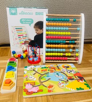 Lote Juguetes Madera: Abaco, Puzzle, Gusano