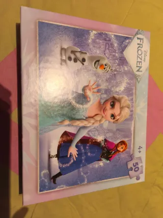 Puzzle de 50 piezas de la película Frozen de Disney. Ideal para los más pequeños. - Personajes: Elsa, Anna y Olaf. - Diseño con temática invernal. - Recomendado para mayores de 4 años.