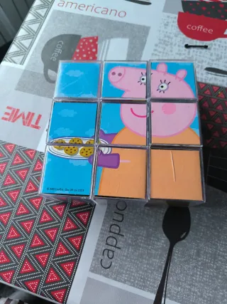 Puzzle Peppa Pig. Hay 9 cubos nuevos. La caja está