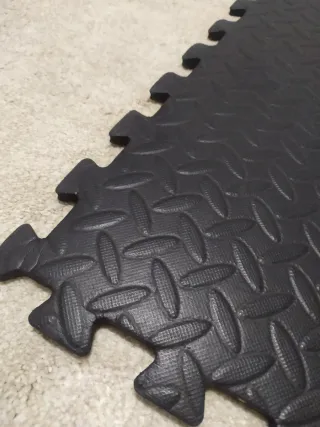 Esterilla de suelo o suelo acolchado tipo puzzle ideal para cuartos de juegos de niños o incluso para la práctica de ejercicios tipo yoga, pilates, etc El lote se compone de 4 piezas que encajan entre si. Cada pieza mide 60x60.