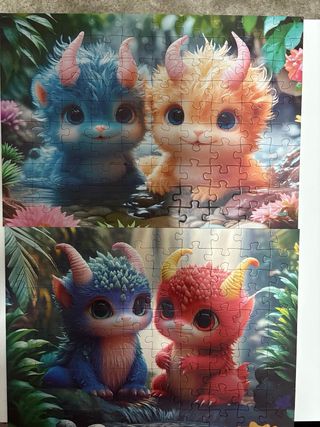 Set de dos puzzles de la marca Educa con 100 piezas cada uno. Presentan un diseño de adorables dragones. - Dos puzzles de 100 piezas. - Ilustraciones de dragones estilo kawaii. - Ideal para aficionados a los puzzles.