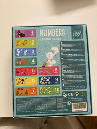 Puzzle educativo de números con método Montessori. Ideal para los más pequeños. - Incluye 20 piezas. - Fomenta la coordinación ojo-mano y la resolución de problemas. - Diseñado en España. - Ayuda a aprender inglés.