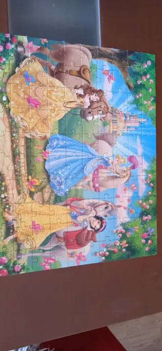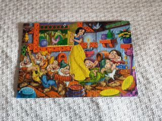 Vendo puzzle infantil de Disney de Blancanieves y los siete enanitos. Las medidas aparecen en las imágenes. Es de 252 piezas. El puzzle se encuentra montado y pegado a una tabla de plástico. Falta una pieza en la esquina inferior izquierda.